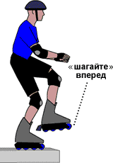 | Возможен способ, когда вы подъезжаете под острым углом к препятствию, тогда вы делаете шаг не вперед, а вперед и немного в сторону, поставив свою ногу на поверхность на которую вы съезжаете, переносите вес тела на эту ногу, а затем снимайте вторую ногу и переставляйте ее вслед за первой. Этот способ даже немного легче, чем когда вы подъезжаете под прямым углом, потому что вы как бы не делаете резких движений, нет такого перескока, как в способе описанном выше. |