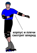 Избегайте разворота. Для поддержания равновесия руки необходимо направить в противоположную сторону от тормозящей ноги, т.е. если тормозящая нога у вас правая, то руки параллельно направляем влево и не забываем о правильном положении тела и плеч. |