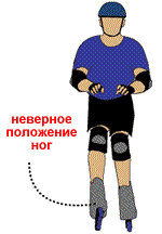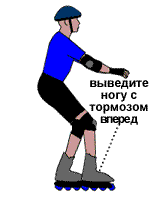Избегайте разворота. Для того, чтобы избежать разворота и падения, следите за расположением ног, тормозящую ногу следует выдвигать строго вперед, а не так как это показано на картинке. |