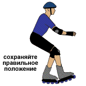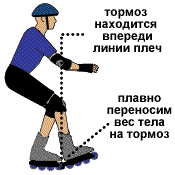 Сохраняйте правильное положение. Не забывайте о правильном положении - ноги согнуты в коленях, корпус слегка наклонен вперед. При выпрямлении ног или спины повышается вероятность падения на спину. Переусердствовать ненужно, иначе если вы слишком сильно наклонитесь вперед и резко перенесете веc тела на тормоз, то вас может выбросить вперед. |