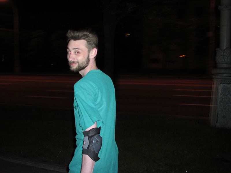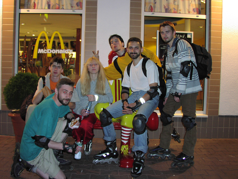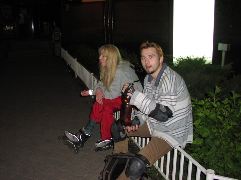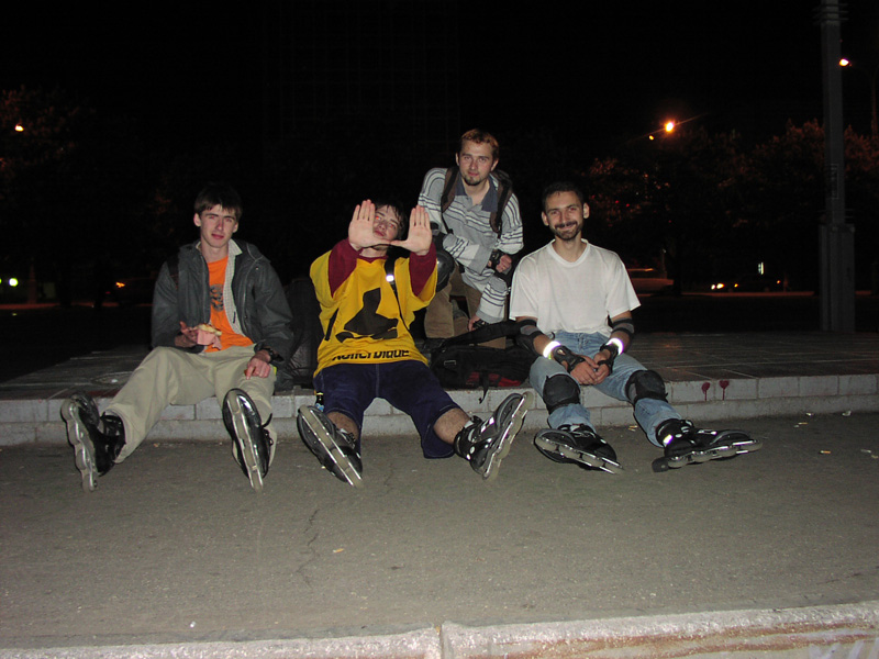 Малиновые штаны - два раза «ку». Ну устали немного и отдохнуть присели, все же люди. Мы всю ночь не бегаем на коньках. Скажу по секрету - нанимаем троллейбус и колесим по городу фотки делаем ;о), не верите? Присоединяйтесь - сами увидите. |
