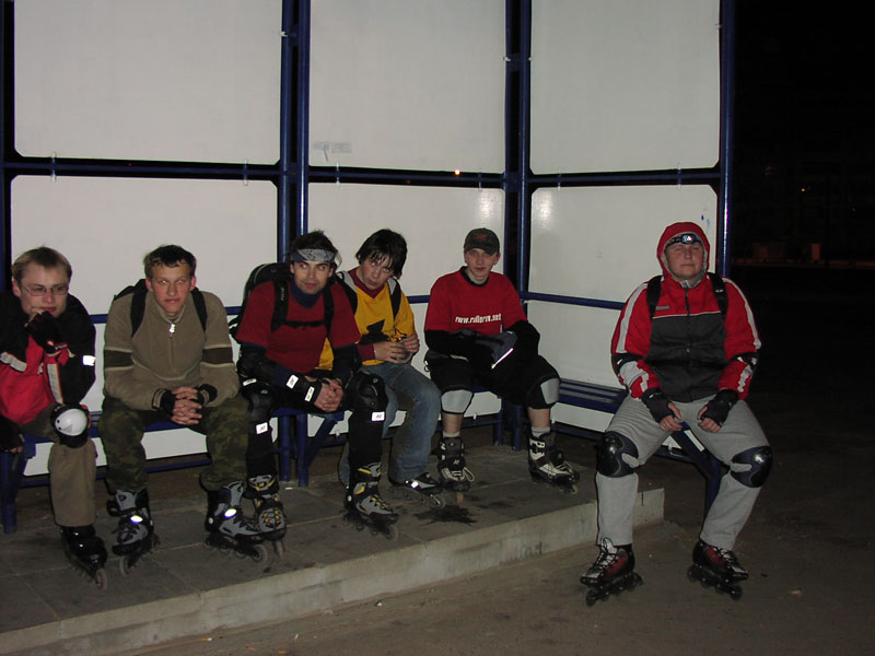 «Хорошо сидим...» Пока мы ехали/плелись, нас догнал [ANTI]KILLER (aka Стас), тот что в красной коммандной майке второй справа, именно он и будет проводить ночные, когда я буду не в состоянии. Многие его помнят из прошлогодних ночных поездок и поездочек. А мы сидим и ждем Диму из Сухарево (aka Jim), который изъявил желание присоединиться к нам, когда завидел процессию из окошка. |