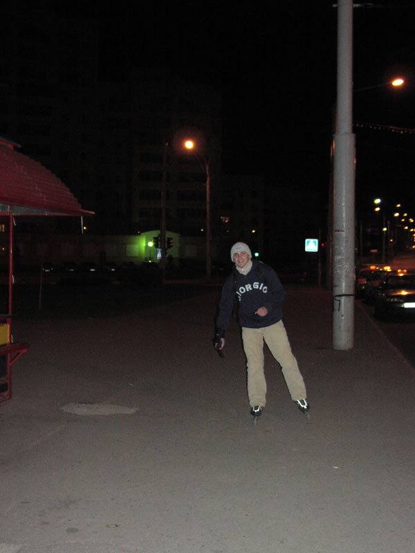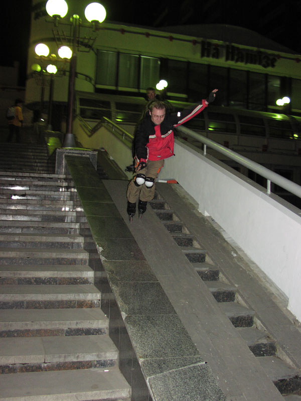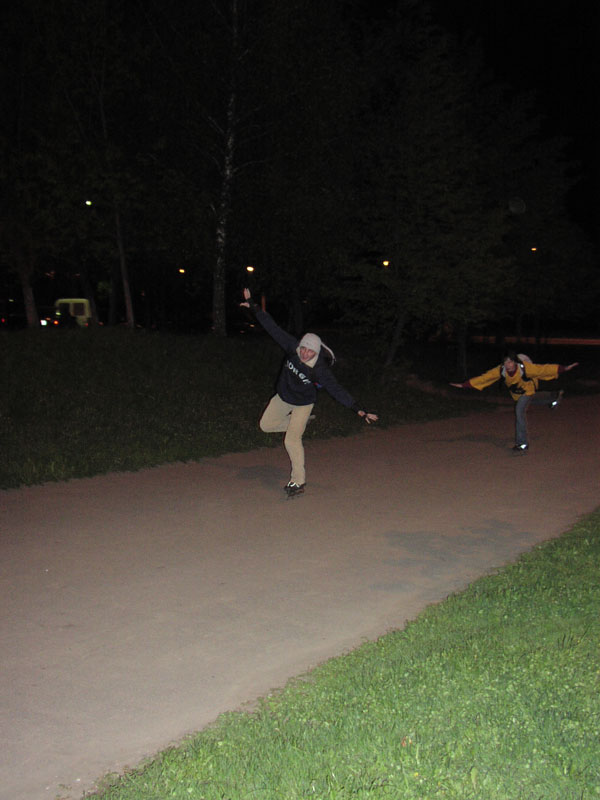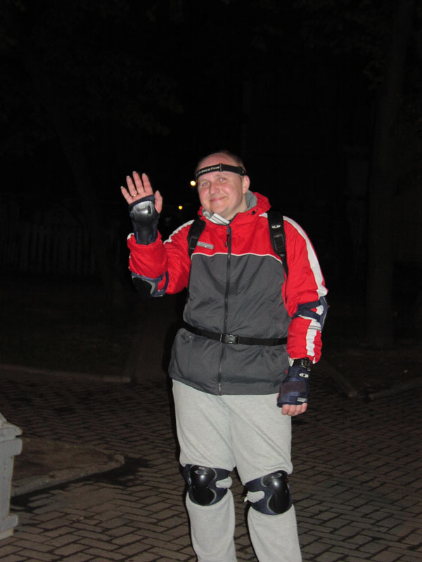 «До свиданья, Москва, до свиданья! Олимпийская сказка, прощай!» Вот мы и подъезжаем к запланированному концу маршрута. Попращались с Александром, он держался молодцом, хотя городской асфальт для него был не подарок, отсюда вывод — езда исключительно по ровному асфальту не способствует всестороннему развитию роллера. |